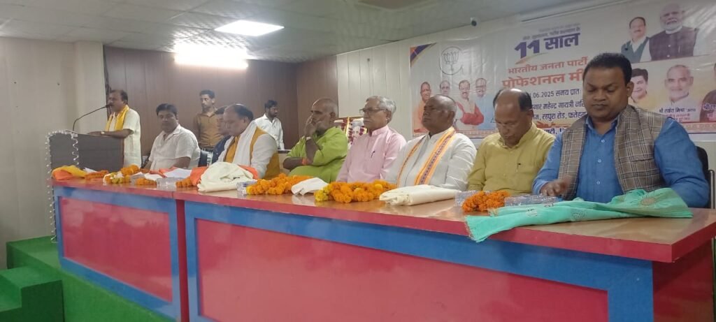 मुख्य वक्ता के रूप में जिलाध्यक्ष सोमपाल शर्मा,सांसद छत्रपाल सिंह गंगवार, मेयर उमेश गौतम और क्षेत्रीय महामंत्री राकेश मिश्रा,विधायक डीसी वर्मा, एमपी आर्य ने बताया कि मात्र 11 वर्ष में मोदी सरकार की समावेशी नीतियों के चलते भारत अब दुनिया की चौथी सबसे बड़ी अर्थव्यवस्था बन चुका है। जन औषधि केंद्रों, वंदे भारत ट्रेनों, मेट्रो नेटवर्क और नए एयरपोर्ट्स की संख्या में रिकॉर्ड बढ़ोत्तरी,गरीबों को आवास,शौचालय,हर घर बिजली, आतंकवाद, नक्सलवाद और साइबर खतरों से निपटने के लिए निर्णायक उठाए गए कदम से नए भारत का निर्माण हुआ है। ऑपरेशन गंगा और ऑपरेशन सिंदूर से विश्व स्तर पर भारत ने डंका बजाया है। इस अवसर पर बहोरन लाल मौर्य,मंडल अध्यक्ष कैलाश शर्मा,वीरपाल गंगवार, तेजेश्वरी सिंह, सतेंद्र सिंह,कृष्णपाल मौर्य,अजय सक्सेना,मंजू कोरी,संजय चौहान, राम गुप्ता,अभय चौहान, मनीष अग्रवाल सहित बड़ी संख्या में डॉक्टर, अधिवक्ता, व्यापारी, शिक्षक, चार्टर्ड अकाउंटेंट और सामाजिक कार्यकर्ता उपस्थित रहे।