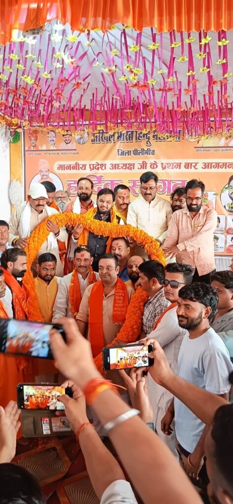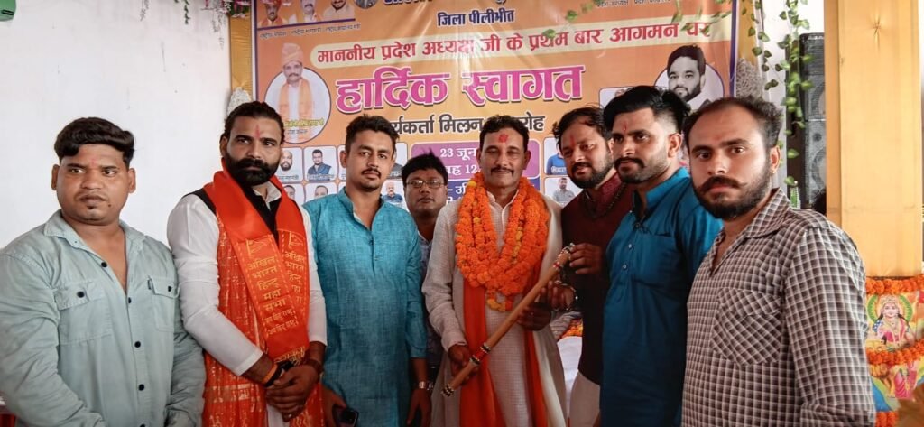 पीलीभीत। अखिल भारत हिन्दू महासभा के प्रदेश अध्यक्ष संजीव सिंह राणा एवं प्रदेश कार्यालय मंत्री विवेक वशिष्ठ के प्रथम बार पीलीभीत आगमन पर सोमवार को संगठन द्वारा एक भव्य स्वागत एवं संवाद कार्यक्रम आयोजित किया गया। जिलाध्यक्ष पं. पंकज शर्मा के नेतृत्व में आयोजित इस कार्यक्रम में जिलेभर से सैकड़ों कार्यकर्ताओं एवं समाज के प्रबुद्धजनों ने उत्साहपूर्वक भाग लिया। इस दौरान प्रदेश अध्यक्ष द्वारा विवेक श्रीवास्तव को पश्चिमी उत्तर प्रदेश के प्रभारी की जिम्मेदारी भी दी गई।