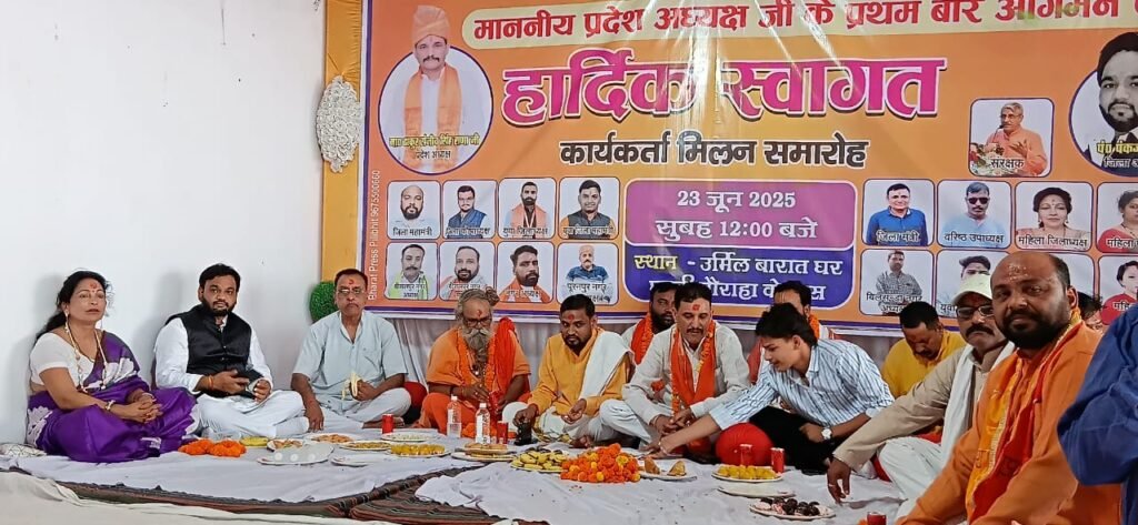 इसके पश्चात समस्त कार्यकर्ता एवं पदाधिकारी उर्मिल बारात घर पहुँचे, जहाँ कार्यकर्ता मिलन समारोह का आयोजन किया गया। कार्यकर्ता मिलन समारोह का संचालन संरक्षक संजय पांडेय ने किया। इस दौरान प्रदेश अध्यक्ष ने कार्यकर्ताओं से सीधे संवाद किया और संगठन के जिला स्तर पर हो रहे कार्यों की सराहना की। उन्होंने कहा कि हिन्दू महासभा केवल एक संगठन नहीं, बल्कि एक विचारधारा है जो भारत की सनातन आत्मा और सांस्कृतिक मूल्यों की रक्षा के लिए निरंतर कार्य कर रही है। उन्होंने युवाओं से संगठन से जुड़ने और समाज में सांस्कृतिक चेतना फैलाने का आह्वान किया। इस दौरान विवेक श्रीवास्तव को पश्चिमी उत्तर प्रदेश का प्रभारी नियुक्त किया गया। प्रदेश कार्यालय मंत्री ने कहा कि हिन्दू महासभा एक राजनीतिक संगठन है और यह भारत की सबसे पहली पार्टियों में से एक है, जिसकी स्थापना 1885 में हुई थी। हिन्दू महासभा पूरे देश में जातियों में बंटे हिंदुओं को एकत्र करने के लिए कार्य कर रही है।