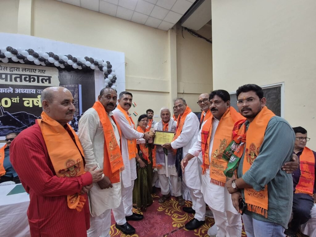 कार्यक्रम में माननीय सांसद सुधीर गुप्ता, भारतीय जनता पार्टी के जन प्रतिनिधियों के साथ मिसाबंदी एवं आपातकाल के समय राष्ट्रसेवा करने वाले समर्पित कार्यकर्ताओं व उनके परिजनों को शाल–श्रीफल एवं प्रशस्ति पत्र भेंटकर सम्मानित किया गया।