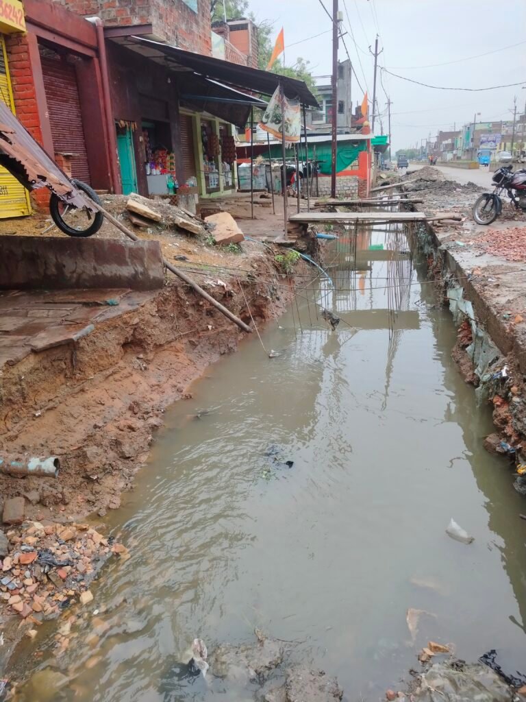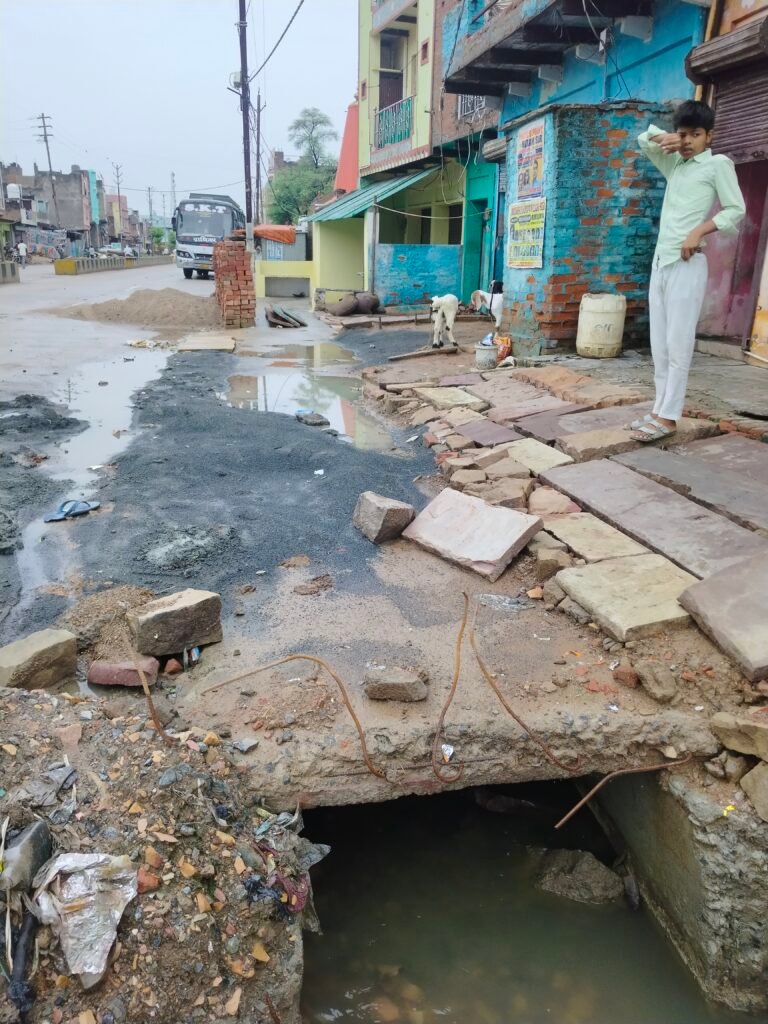 इस अधूरे निर्माण के चलते रास्ते में कीचड़, गंदा पानी और गड्ढों का जाल बन गया है।