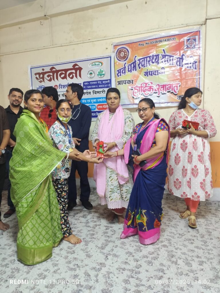 सर्वधर्म स्वास्थ सेवा समिति के डॉ उमेश राठौर एवं सदस्यों ने संजीवनी हॉस्पिटल के डाक्टरों का फुलो का उपहार देकर स्वागत किया।