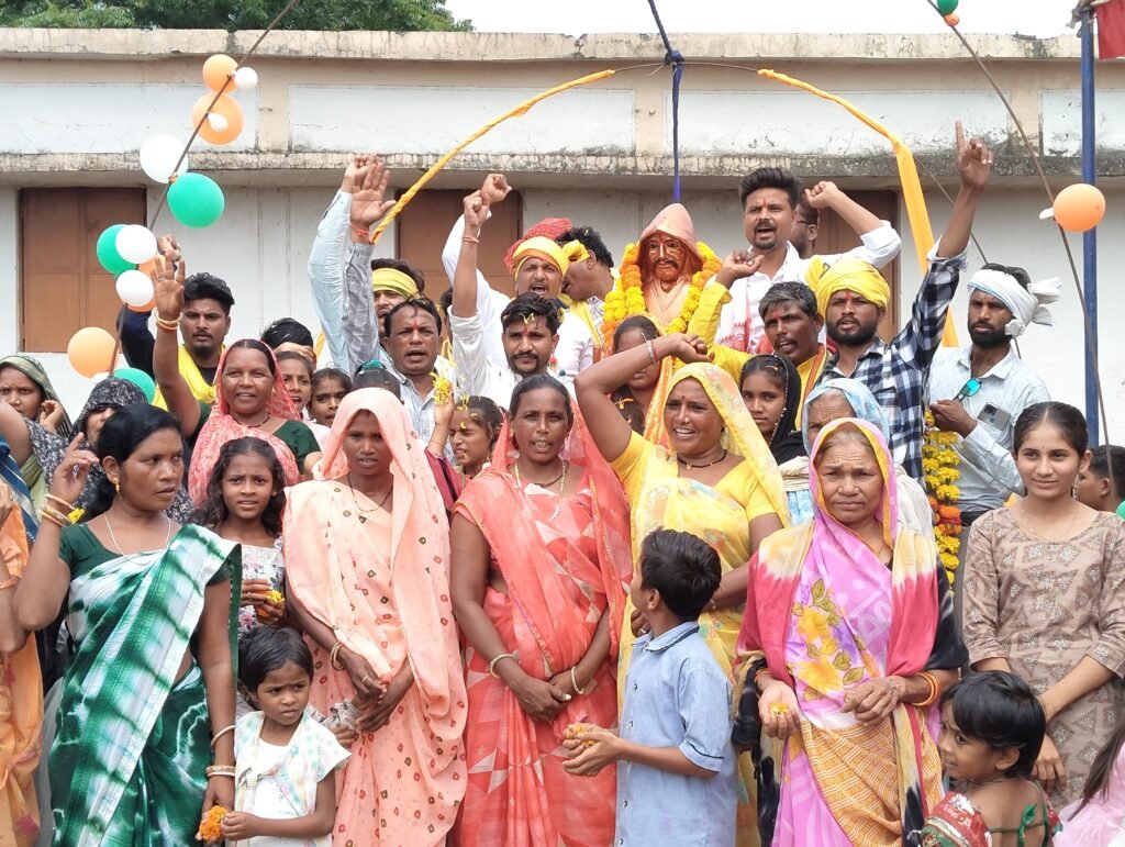 मनावर। जिला धार। समीपस्थ ग्राम पंचायत गणपुर चौकड़ी पर राष्ट्रीय जन नायक टंट्या भील की मूर्ति का अनावरण किया गया।