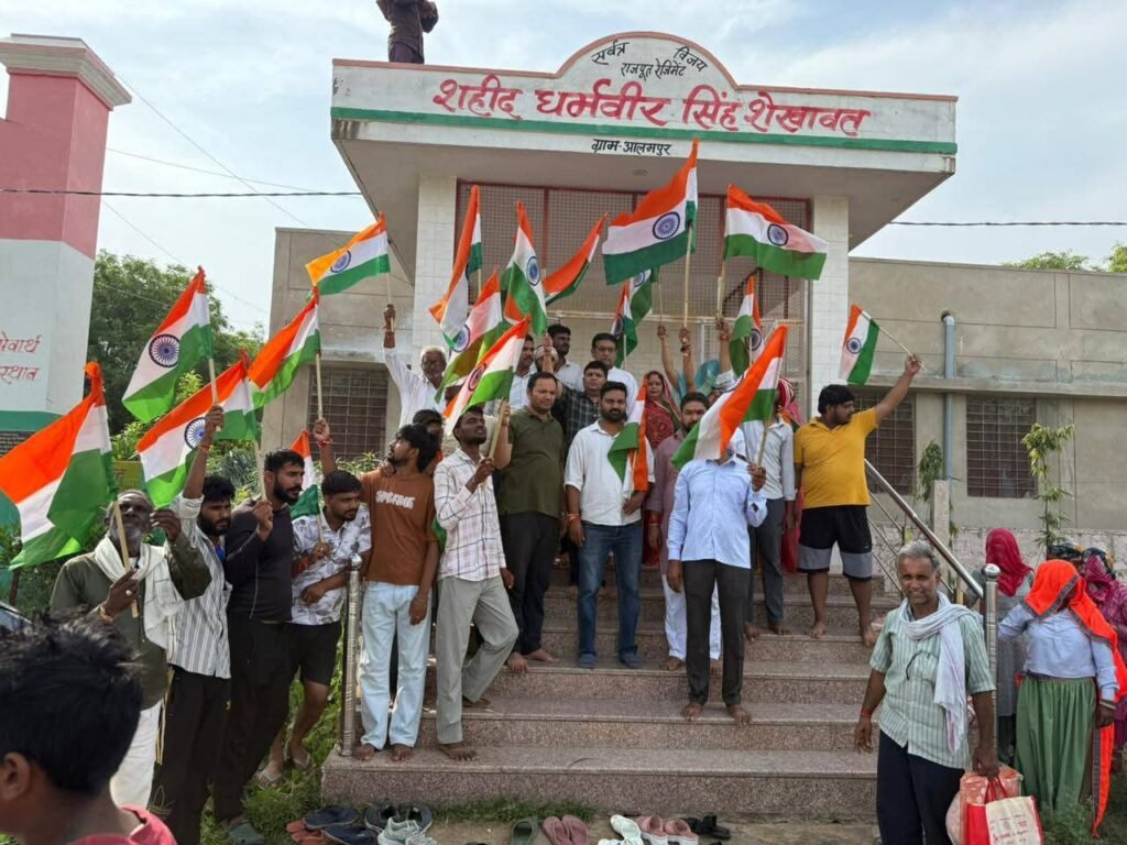 तिरंगा यात्रा की शुरुआत कांकरिया बस स्टैंड से आलमपुर सरकारी स्कूल के पास शहीद धर्मवीर सिंह शेखावत की प्रतिमा पर माल्यार्पण के साथ हुई। भाजपा कार्यकर्ता हाथों में तिरंगा लिए भारत माता की जय, वंदे मातरम और शहीदों को याद करते हुए जोश के साथ शामिल हुए। शहीद के परिजनों को माला और साफा पहनाकर सम्मानित किया गया और वीरांगना को शॉल ओढाकर सम्मानित किया गया।