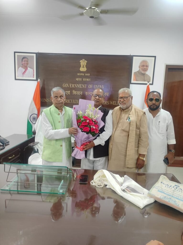 धार न्यूज/ कृषि भवन नई दिल्ली में केंद्रीय कृषि एवं किसान कल्याण राज्य मंत्री माननीय श्री रामनाथ जी ठाकुर से जननायक कर्पूरी ठाकुर ओबीसी संगठन के राष्ट्रीय अध्यक्ष एवं सर्व समाज जन सेवक संगठन रजि. के राष्ट्रीय कार्यकारिणी अध्यक्ष रघुवीर श्रीवास एवं सुभाष वर्मा राष्ट्रीय कार्यकारिणी अध्यक्ष जननायक कर्पूरी ठाकुर ओबीसी संगठन के संयुक्त तत्वाधान में मिला और उन्हें ज्ञापन सौंप कर भविष्य में होने वाले कार्यक्रमों में आमंत्रण हेतु चर्चा की गई इंदौर एवं भोपाल में भारत रत्न जननायक कर्पूरी ठाकुर उनके नाम पर उद्यान करवा कर आदमकद प्रतिमा लगाने हेतु चर्चा की गई उन्होंने प्रदेश के यशस्वी मुख्यमंत्री माननीय श्री डॉ मोहन यादव जी को इसके संबंध में पत्र भेज कर निर्देश प्रदान करने का आश्वासन दिया और कहां की जब भी बुलाएंगे निश्चित आऊंगा*