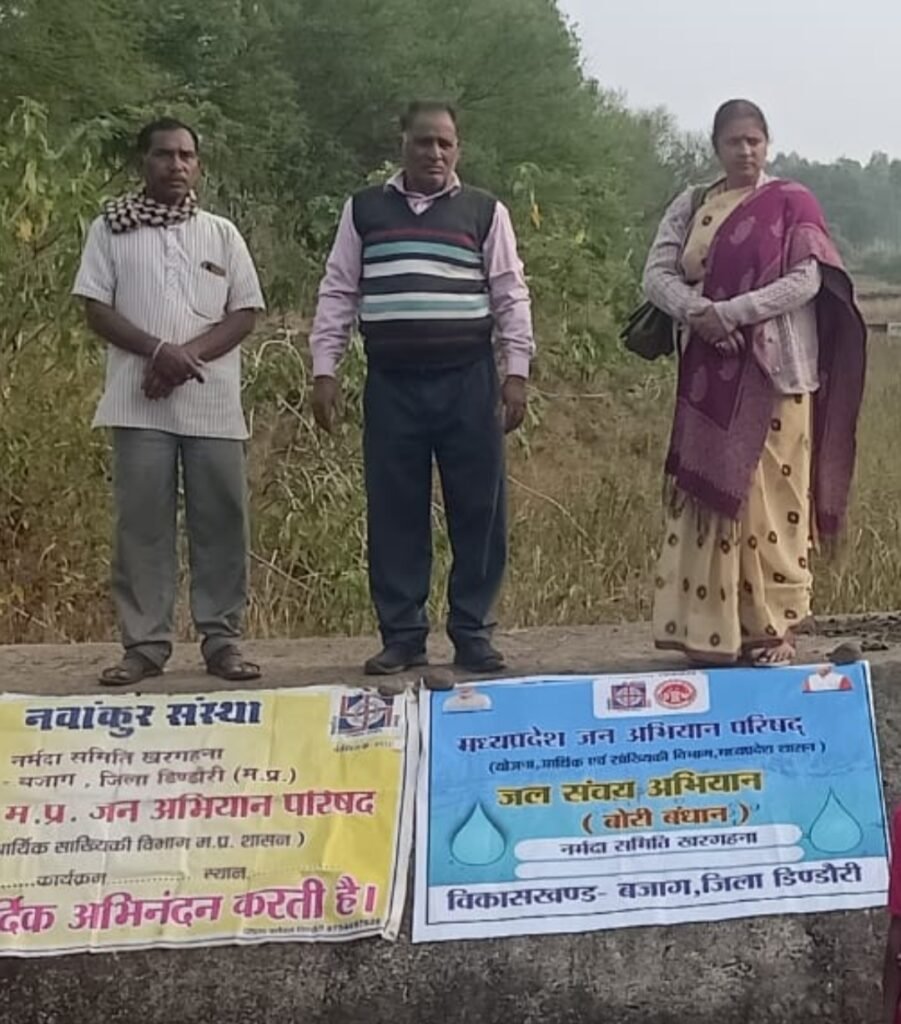 मध्यप्रदेश जन अभियान परिषद् द्वारा संचालित नवांकुर संस्था नर्मदा समिति खरगहना विकासखण्ड बजाग द्वारा ग्राम कौडिया में शंकर नाला में प्रस्फुटन समिति के माध्यम से स्टाप डेम गेट पर 25 बोरियां, मिट्टी, पत्थर से पानी रोका गया इस पानी का उपयोग ग्रामवासियों के उपयोग हेतु, मवेशियों के पानी पीने हेतु एवं सिंचाई हेतु उपयोग किया जाता है इस कार्य में विकासखण्ड समन्वयक श्रीमती अंजू दुबे, मेंटर श्री खिलावन सिंह गौतम,बालकिशोर,कोमल यादव एवं सदस्यों ने सहभागिता दी