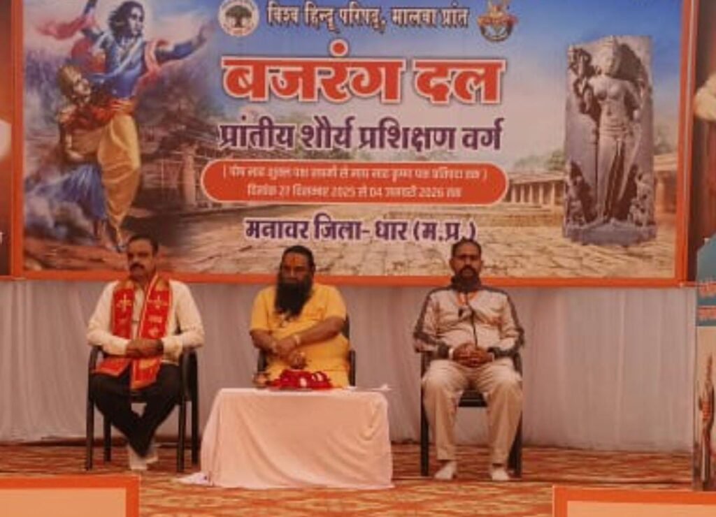 वक्ताओं ने कहा कि विश्व हिंदू परिषद बजरंग दल राष्ट्रधर्म की रक्षा, हिंदू समाज के संगठन, सांस्कृतिक जागरण, सेवा कार्यों तथा आपदा काल में समाजसेवा के माध्यम से निरंतर महत्वपूर्ण भूमिका निभा रहा है। संगठन का उद्देश्य श्रीराम के आदर्शों और श्रीहनुमान जी की सेवा भावना को युवा पीढ़ी के जीवन में स्थापित करना है। यह शौर्य प्रशिक्षण वर्ग विश्व हिंदू परिषद बजरंग दल के प्रांत संगठन मंत्री खगेंद्र भार्गव के मार्गदर्शन में संचालित किया जा रहा है। उनके नेतृत्व में यह प्रशिक्षण वर्ग युवाओं के चरित्र निर्माण, आत्मविश्वास, शारीरिक मानसिक सुदृढ़ता और राष्ट्रभक्ति को मजबूत करने का सशक्त माध्यम बन रहा है। कार्यक्रम के समापन अवसर पर महामंडलेश्वर श्री नरसिंहदास जी महाराज ने राष्ट्रभाव को रेखांकित करते हुए कहा कि जननी जन्मभूमिश्च स्वर्गादपि गरीयसी।उन्होंने उपस्थित युवाओं को श्रीराम के आदर्शों पर चलने, श्रीहनुमान जी की भांति निःस्वार्थ सेवा करने तथा हिंदुत्व, राष्ट्र और समाज की रक्षा के लिए सदैव तत्पर रहने का संकल्प दिलाया।