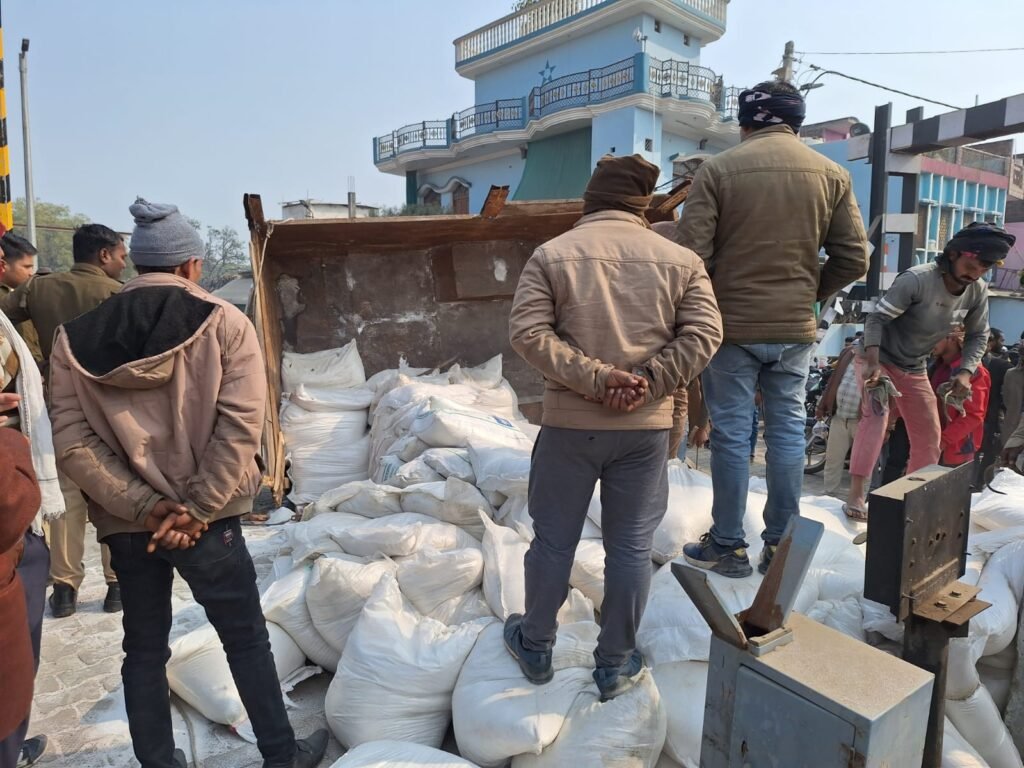 सुमेरपुर हमीरपुर। कस्बे के रेलवे स्टेशन के डंपिंग ग्राउंड से केमिकल पाउडर लादकर उद्योग नगरी आ रहा ट्रैक्टर ट्राली बांदा मार्ग के रेलवे के गेट संख्या 31 में पलट गया। इससे बांदा मार्ग सहित रेलवे रूट ठप हो गया।