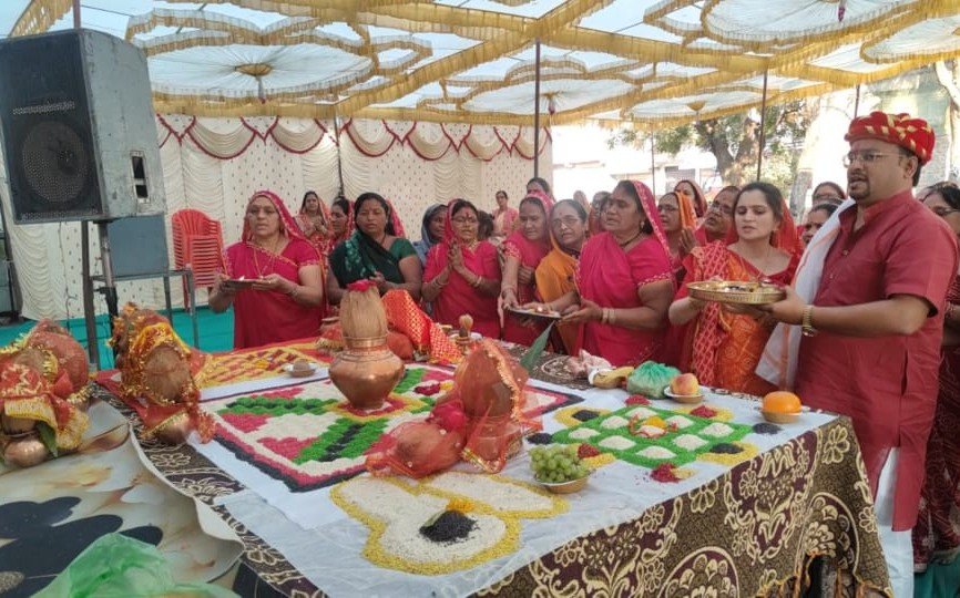 मनावर।जिला धार ।। गुप्त नवरात्रि के पावन पर्व पर मां चामुण्डा देवी मंदिर परिसर में श्रीमद् देवी भागवत कथा का भव्य आयोजन स्थानीय भजन मंडल मातृशक्ति द्वारा आयोजित किया गया। दुर्गा मंदिर से विशाल कलश यात्रा निकाली गई जिसमें भारी तादाद मे नगरवासी मातृशक्ति ने सम्मिलित रहे।