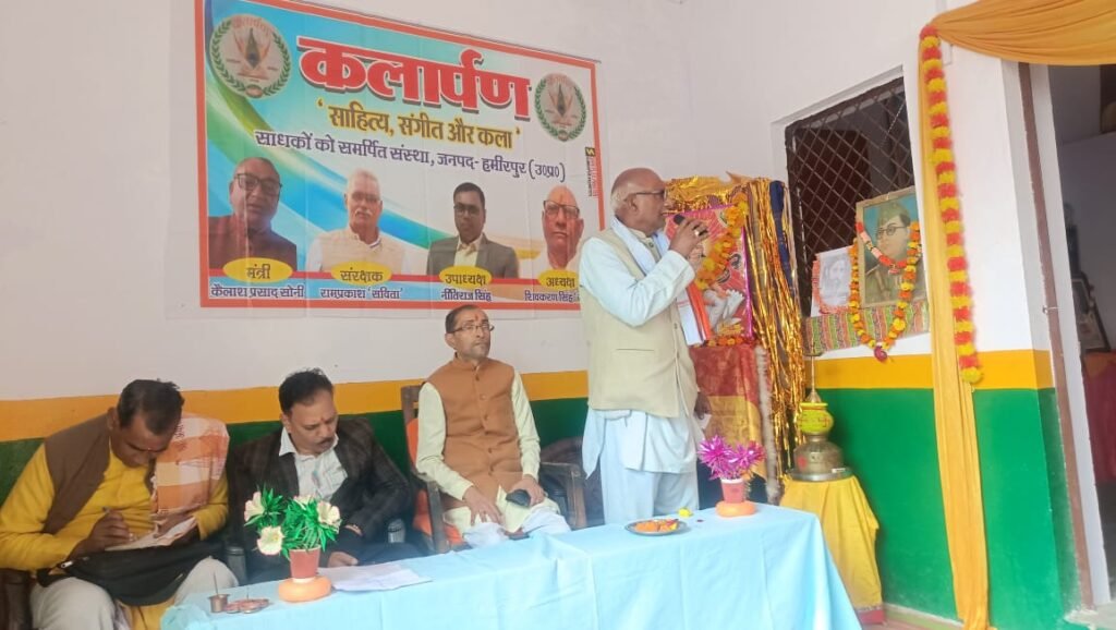 सुमेरपुर, हमीरपुर। “साहित्य संगीत और कला” साधकों को समर्पित संस्था, कलार्पण जनपद हमीरपुर के द्वारा वसंतपंचमी, माँ सरस्वती पूजन, महाकवि सूर्यकान्त त्रिपाठी निराला जी के जन्म दिवस तथा स्वतंत्रता संग्राम सेनानी सुभाष चन्द्र बोस जी के जन्मदिवस पर लालूसिंह पब्लिक स्कूल सुमेरपुर में हवन पूजन के उपरांत कवि गोष्ठी का आयोजन सम्पन्न हुआ।