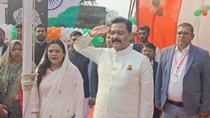 नगर परिषद अध्यक्ष श्रीमती राजेश्वरी हरीश दुवे ने मंच से जो कहा वह केवल भाषण नहीं था वह नगर के आत्मसम्मान की हुंकार थी। उन्होंने स्पष्ट शब्दों में कहा विजयराघवगढ़ नगर परिषद को वर्षों से गरीब कहा गया लेकिन सच्चाई यह है कि मध्यप्रदेश के सबसे सशक्त विधायक के क्षेत्र की नगर परिषद गरीब हो ही नहीं सकती।उन्होंने बताया कि विधायक संजय पाठक द्वारा नगर परिषद के लिए 22 करोड़ रुपये की राशि स्वीकृत कराई गई थी किंतु पूर्व में उसका सही उपयोग नहीं हो सका। वक्त कम है पर इरादे बहुत मजबूत हैं। विधायक जी का आशीर्वाद बना रहा तो बहुत जल्द विजयराघवगढ़ की तस्वीर बदल कर रहेगे।उनके आत्मविश्वास से प्रभावित विधायक संजय पाठक ने मंच से नगर परिषद की प्रशंसा करते हुए कहा विकास के मार्ग पर चलने वालों की आलोचना होती है लेकिन हमें रुकना नहीं है। विरोध की नहीं विकास की चिंता करनी है। भाजपा कार्यालय में भी फहराया तिरंगा, कार्यकर्ताओं को दिया सेवा का मंत्र कार्यक्रम के अंत में विधायक संजय पाठक ने विधायक कार्यालय में भी ध्वजारोहण किया और भाजपा पदाधिकारियों व कार्यकर्ताओं को संबोधित करते हुए कहा कि संगठन की शक्ति ही राष्ट्र निर्माण की सबसे बड़ी ताकत है। हर कार्यकर्ता सेवा समर्पण और ईमानदारी को अपना धर्म माने। इस दौरान उपस्थित जनो मे नगर परिषद अध्यक्ष राजेश्वरी हरीश दुवे जनपद उपाध्यक्ष उदयराज सिंह चौहान मंडल अध्यक्षों मे श्रीराम सोनी विवेक सिंह प्रमोद सोनी भवानी राजा, कैमोर नगर परिषद अध्यक्ष पलक नमीत ग्रोवर पूर्व नगर परिषद के पार्षद अजय शर्मा उपाध्यक्ष संतोष केवट प्रमोद शुक्ला जयवंत सिंह चौहान नन्दू गुप्ता अरशद खान रंगलाल पटेल हरिओम वर्मन डाक्टर विनोद कुमार थाना प्रभारी रितेश शर्मा एसडीओपी विरेंद्र धार्वे परियोजना अधिकारी संतोष अग्रवाल डाक्टर शारदा साहू संदीप मिश्रा पीडी अवस्थी तथा पार्षदों नगर के गणमान्य नागरिको आदी बडी संख्या में लोगो की मौजूदगी रही