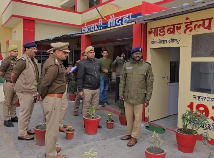 मौदहा हमीरपुर। शनिवार दोपहर पुलिस उपमहानिरीक्षक चित्रकूट धाम मण्डल ने कस्बे की कोतवाली का औचक निरीक्षण किया इस दौरान उन्होंने महिला हेल्प डेस्क, दस्तावेज और रखरखाव सहित शस्त्र जांच किए,साथ ही पुलिस कर्मियों ने सलामी दी,इस दौरान पुलिस अधीक्षक और क्षेत्राधिकारी भी मौजूद रहे।