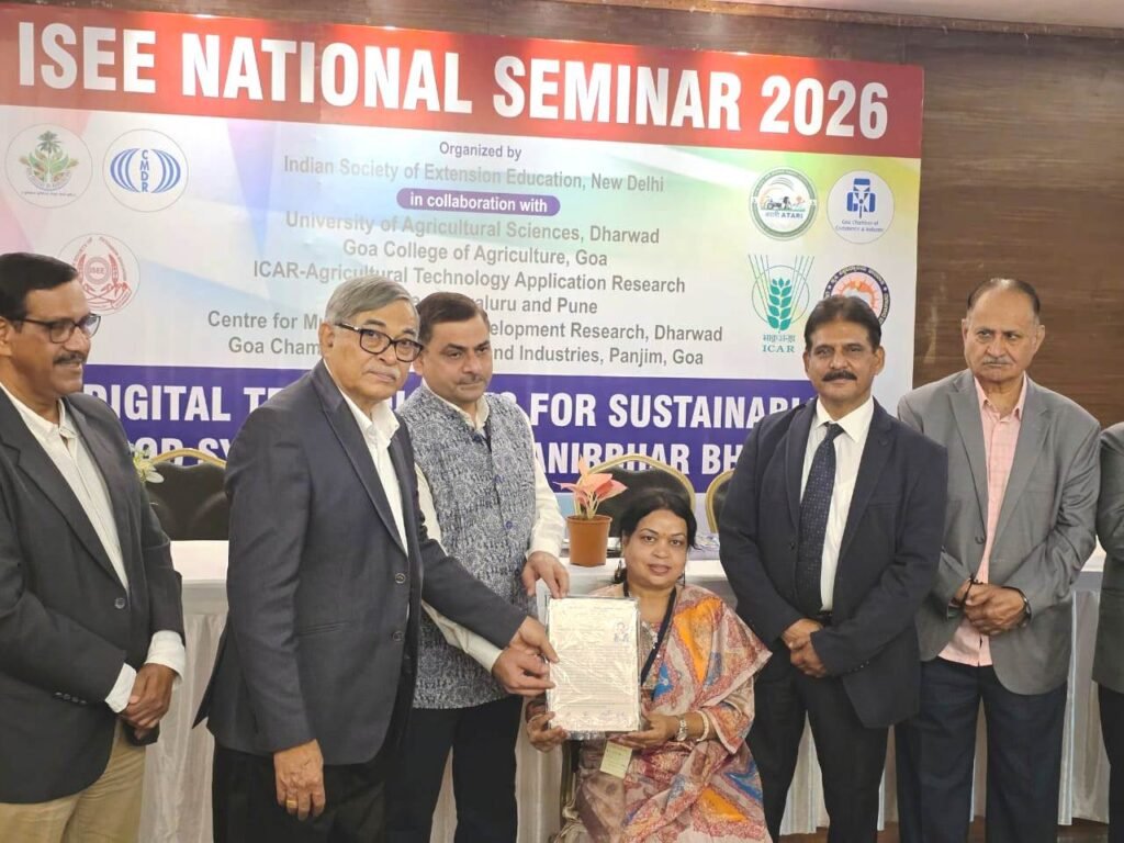 ज्ञात हो कि इंडियन सोसाइटी ऑफ एक्सटेंशन एजुकेशन, नई दिल्ली द्वारा मीरामार गोवा में तीन दिवसीय राष्ट्रीय सेमिनार “डिजिटल टेक्नोलॉजिस फॉर सस्टेनेबल फूड सिस्टम एंड आत्मनिर्भर भारत” पर दिनांक 29 से 31 जनवरी 2026 के दौरान किया गया था। जिसमें 23 राज्यों के 150 से अधिक कृषि वैज्ञानिक एवं शोधार्थी सम्मिलित हुए एवं कृषि क्षेत्र में किए गए उल्लेखनीय कार्यों एवं शोध का प्रस्तुतिकरण किया गया।