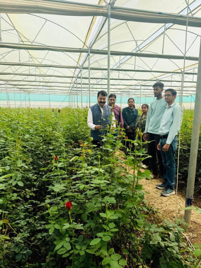 *इस सफल कृषि मॉडल का निरीक्षण उपसंचालक कृषि श्री जितेन्द्र कुमार सिंह द्वारा विभागीय टीम के साथ किया गया। निरीक्षण के दौरान उन्होंने पॉलिहाउस में गुलाब की उन्नत खेती की प्रक्रिया, उत्पादन क्षमता, विपणन व्यवस्था और किसानों को होने वाले लाभ की जानकारी ली।*