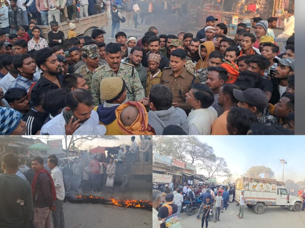 छात्रा के मौत बाद ग्रामीणों ने किया मुख्य सड़क जाम प्रशासनिक पदाधिकारी के आश्वासन पर जाम हटी