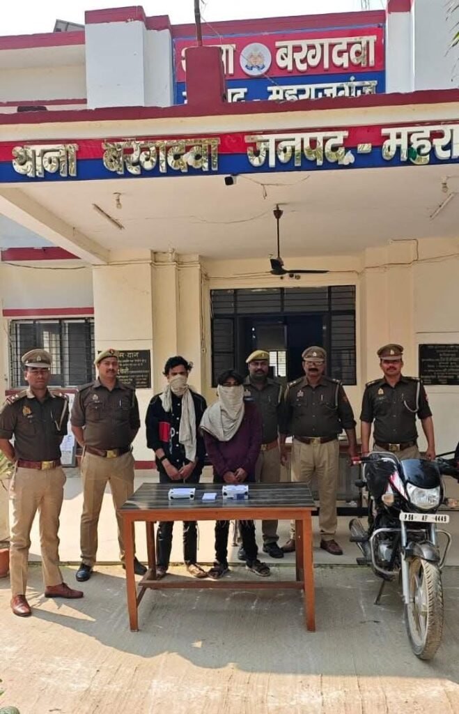 महराजगंज जिले में नशीली दवाओं की तस्करी पर अंकुश लगाने के लिए चलाए जा रहे अभियान के तहत पुलिस को बड़ी सफलता मिली है। पुलिस अधीक्षक महराजगंज सोमेन्द्र मीना के निर्देशन में थानाध्यक्ष बरगदवा के नेतृत्व में पुलिस व एसएसबी की संयुक्त टीम ने कार्रवाई करते हुए दो अभियुक्तों को गिरफ्तार कर उनके कब्जे से 500 प्रतिबंधित नशीली कैप्सूल बरामद की हैं।दिनांक 17 फरवरी 2026 की रात करीब 10:38 बजे मुखबिर की सूचना पर थाना क्षेत्र के बहद ग्राम स्थित एसएसबी कैम्प बरगदवा के पास घेराबंदी कर दो संदिग्ध युवकों को पकड़ा गया। तलाशी के दौरान उनके पास से 241 कैप्सूल PROXYCO SPAS तथा 259 कैप्सूल ANTI SPASMODIC सहित कुल 500 नशीली कैप्सूल बरामद हुईं।गिरफ्तार अभियुक्तों की पहचान मंजेकर गोंड़ (20 वर्ष) पुत्र स्व. लल्लन गोंड निवासी बरगदवा थाना बरगदवा जनपद महराजगंज तथा शमसेआलम मंसूरी (19 वर्ष) पुत्र कुतुबुद्दीन निवासी चमनटोला वार्ड नं. 5 थाना महेशपुर जिला नवलपरासी,नेपाल के रूप में हुई है।पुलिस ने आरोपियों के कब्जे से एक रेडमी 9आई मोबाइल फोन, एक मोटरसाइकिल HF डीलक्स (नंबर UP56AF4449), 120 रुपये भारतीय तथा 100 रुपये नेपाली मुद्रा भी बरामद की है। बरामद मोटरसाइकिल का चेसिस नंबर MBLHAW021K9F04241 तथा इंजन नंबर HA11ENK9F10659 बताया गया है।इस संबंध में थाना बरगदवा पर मु0अ0सं0 011/2026, धारा 8/21/23 एनडीपीएस एक्ट के तहत अभियोग पंजीकृत कर विधिक कार्रवाई की जा रही है।