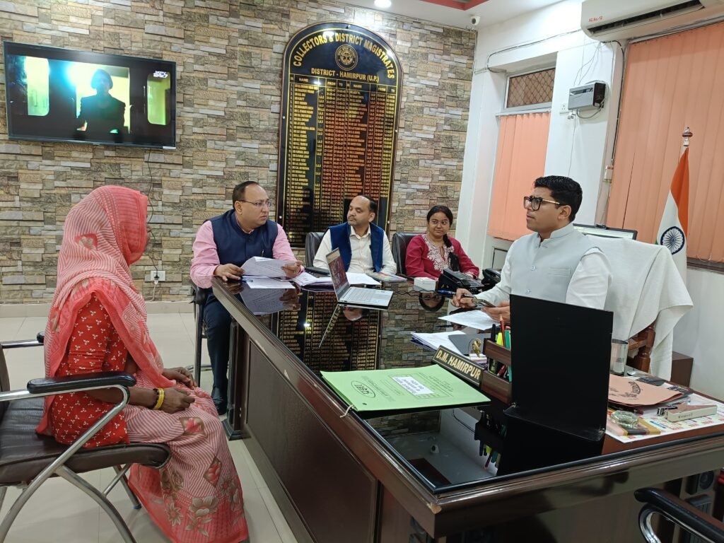 हमीरपुर।26 फ़रवरी को जिलाधिकारी श्री घनश्याम मीना ने कलेक्ट्रेट कार्यालय में जनसुनवाई कर जन सामान्य की शिकायतों को सुना एवं संबंधित अधिकारियों को प्राप्त शिकायतों का गुणवत्तापूर्ण व समयबद्ध तरीके से निस्तारण करने के निर्देश दिए।