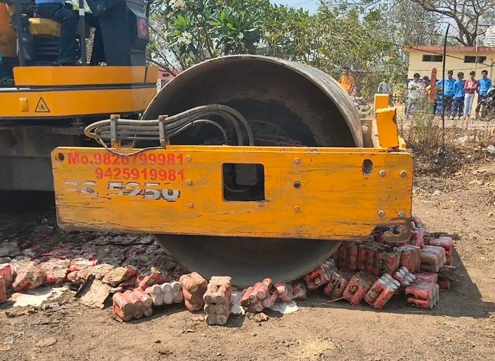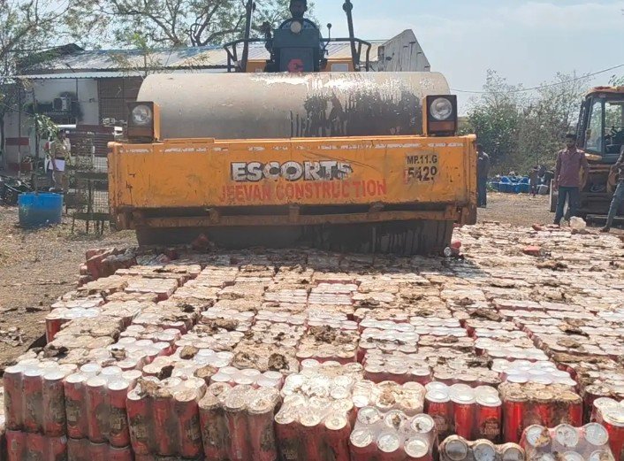 आबकारी विभाग ने 29 लाख की अवैध शराब नष्ट कीः अनुविभागीय अधिकारी, कार्यपालन मजिस्ट्रेट की मौजूदगी में चला बुलडोजर