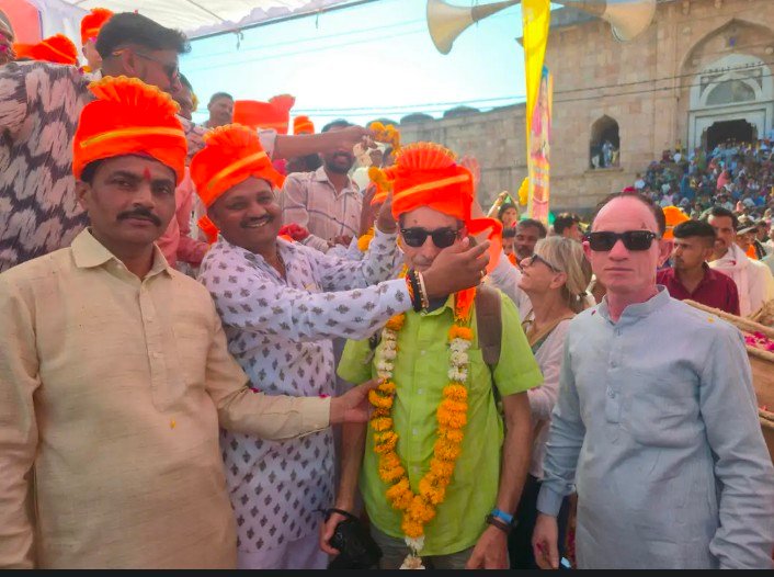केंद्रीय मंत्री ठाकुर और विदेशी पर्यटक जमकर थिरके,वही भाजपा अजजा मोर्चा प्रदेश उपाध्यक्ष जयराम गावर साफा बांधकर स्वागत किया