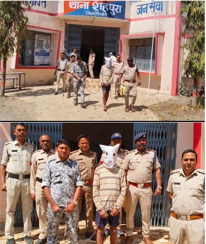 डिंडोरी । दिनांक 26.02.2026 को प्रार्थी अशोक झारिया द्वारा रिपोर्ट दर्ज कराई गई कि उसकी बहन मृतिका राधा बाई के साथ छोटू उर्फ देवेन्द्र चौधरी द्वारा मारपीट कर सिर में गंभीर चोट पहुँचाई गई तथा हरिओम चौधरी द्वारा गला दबाकर उसकी हत्या कर दी गई। उक्त रिपोर्ट पर थाना शहपुरा में अपराध क्रमांक 89/2026 धारा 103(1), 109(1), 331(8), 115(2), 238, 3(5) बीएनएस के तहत प्रकरण पंजीबद्ध किया गया।इसी प्रकार अन्य प्रकरण में प्रार्थी द्वारा अपनी 14 वर्षीय भांजी के साथ हरिओम चौधरी द्वारा गलत कार्य (बलात्कार) किए जाने की रिपोर्ट दर्ज कराई गई, जिस पर अपराध क्रमांक 88/2026 धारा 65(1), 64(2)(k), 64(2)(f), 351(3) बीएनएस एवं धारा 3, 4, 5(L), 6 पॉक्सो एक्ट के तहत प्रकरण पंजीबद्ध किया गया।घटना के बाद दोनों आरोपी फरार हो गए थे। जिनमें से एक आरोपी छोटू उर्फ देवेन्द्र चौधरी को दिनांक 04.03.2026 को गिरफ्तार कर लिया गया था। वहीं दूसरे आरोपी हरिओम चौधरी द्वारा लगातार अपने ठिकाने बदलकर पुलिस से बचने का प्रयास किया जा रहा था।आरोपी की गिरफ्तारी हेतु श्रीमान पुलिस अधीक्षक महोदय के निर्देशन एवं अतिरिक्त पुलिस अधीक्षक तथा एसडीओपी शहपुरा के मार्गदर्शन में थाना प्रभारी शहपुरा अनुराग जामदार द्वारा टीम गठित कर विभिन्न स्थानों पर लगातार दबिश दी गई। आरोपी की गिरफ्तारी हेतु पुलिस अधीक्षक महोदय द्वारा इनामी उद्घोषणा भी की गई थी।लगातार प्रयासों के फलस्वरूप आरोपी हरिओम चौधरी को कटनी से दस्तयाब कर गिरफ्तार किया गया। पूछताछ में दोनों आरोपियों द्वारा जघन्य घटना कारित करना स्वीकार किया गया है। आरोपियों से घटना में प्रयुक्त सामग्री एवं घटना के समय पहने रक्तरंजित कपड़े जप्त किए गए हैं।