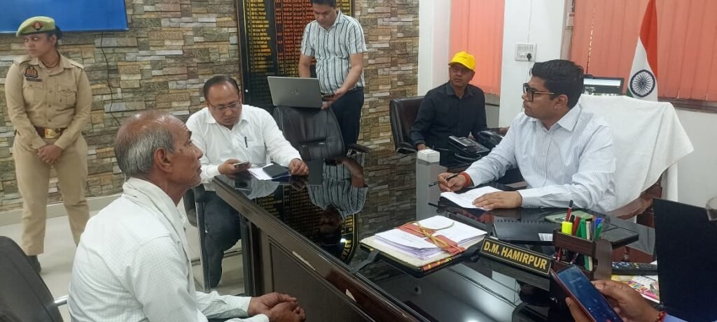 हमीरपुर। जिलाधिकारी श्री घनश्याम मीना ने गुरुवार को कलेक्ट्रेट कार्यालय में आयोजित जनसुनवाई के दौरान आमजन की समस्याएं सुनीं और संबंधित अधिकारियों को शिकायतों के गुणवत्तापूर्ण व समयबद्ध निस्तारण के निर्देश दिए।