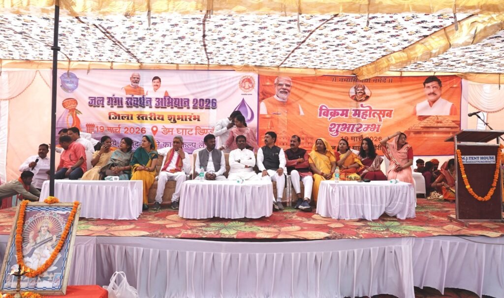 इसी दौरान जनप्रतिनिधियों ने जल गंगा संवर्धन अभियान का 19 मार्च को मां नर्मदा में सफाई कर शुभारंभ किया। जो 19 मार्च से 30 जून 2026 तक जिले के विभिन्न ग्राम पंचायत, विकासखंड स्तर पर चलाया जाएगा। जिसमें प्रशासन, जनप्रतिनिधि, विद्यार्थी और स्थानीय नागरिकों ने भाग लेकर नदियों एवं तालाबों की सफाई की। लोगों को जल स्रोतों को स्वच्छ बनाए रखने और जल की बचत करने का संदेश दिया गया। शहपुरा विधायक ओमप्रकाश धुर्वे ने अपने उद्बोधन में कहा कि जल ही जीवन का आधार है और इसके संरक्षण की जिम्मेदारी हम सभी की है। उन्होंने “जल गंगा संवर्धन सूर्य उपासना दिवस (विक्रमादित्य महोत्सव)” के महत्व पर प्रकाश डालते हुए कहा कि इस प्रकार के आयोजन समाज में जागरूकता बढ़ाने का सशक्त माध्यम हैं। उन्होंने नागरिकों से अपील की कि वे जल स्रोतों की स्वच्छता बनाए रखें, वर्षा जल संचयन को अपनाएं और पानी के दुरुपयोग से बचें। उन्होंने कहा कि आने वाली पीढ़ियों के लिए जल बचाना हमारा कर्तव्य है। जिला अध्यक्ष चमरू सिंह नेताम ने अपने उदबोधन में कहा कि जल गंगा संवर्धन अभियान तभी सार्थक होगा जब समाज के प्रत्येक व्यक्ति को अपने जन्मदिन पर एक पौधा जरूर लगाएं। और शासकीय योजनाओं एवं कार्यक्रमों में आम जनता की भागीदारी एवं सहयोगी भावना अति महत्वपूर्ण है तभी हमारे देश का विकास होगा। पंकज तेकाम ने अपने उदबोधन में कहा कि मध्यप्रदेश सरकार जल संरक्षण अभियान के माध्यम से नदियों की धाराओं को बढ़ाने का हर संभव प्रयास कर रही है। गांव गांव में नदी नाले, कुंआ, बावडी, जलाशय, तालाबों को जल गंगा संवर्धन अभियान के तहत कार्य किये जा रहे हैं। कलेक्टर श्रीमती अंजू पवन भदौरिया ने अपने उद्बोधन में कहा कि जल संरक्षण वर्तमान समय की सबसे बड़ी आवश्यकता है। उन्होंने “जल गंगा संवर्धन सूर्य उपासना दिवस (विक्रमादित्य महोत्सव)” को जनजागरूकता बढ़ाने का महत्वपूर्ण अभियान बताया। उन्होंने कहा कि खेत का पानी खेत में , गांव का पानी गांव में रोककर जल स्रोतों का संरक्षण केवल शासन की जिम्मेदारी नहीं, बल्कि हर नागरिक का कर्तव्य है। हमें अपने दैनिक जीवन में जल का संयमित उपयोग करना चाहिए और वर्षा जल संचयन जैसे उपायों को अपनाना चाहिए।