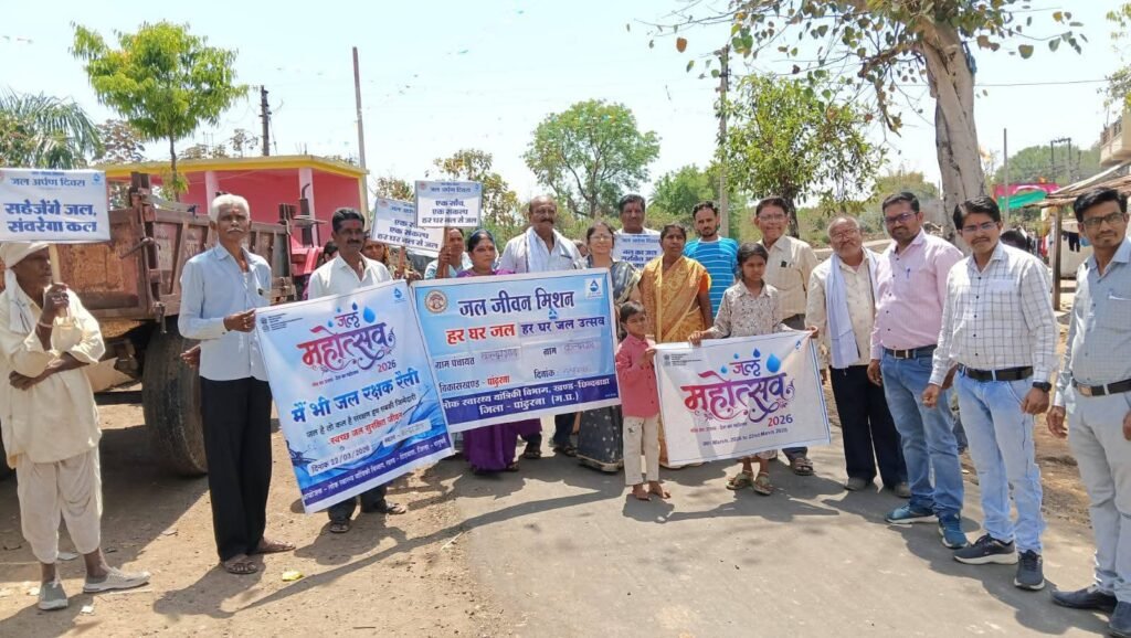 विश्व जल दिवस के अवसर पर विकासखंड पांढुर्णा के ग्राम कलमगांव में “जल महोत्सव गर्व का पर्व, हर घर नल से जल उत्सव” कार्यक्रम का आयोजन बड़े ही उत्साह और जनभागीदारी के साथ किया गया। कार्यक्रम का मुख्य उद्देश्य ग्रामीणों में जल संरक्षण, सुरक्षित पेयजल की उपलब्धता एवं जल स्रोतों के संरक्षण के प्रति जागरूकता बढ़ाना रहा। कार्यक्रम का शुभारंभ ग्रामीण महिलाओं एवं सरपंच द्वारा पुष्प माल्यार्पण तथा विधिवत पूजा-अर्चना के साथ किया गया। इसके उपरांत उपस्थित अतिथियों एवं ग्रामीणजनों का स्वागत एवं अभिनंदन किया गया, जिससे कार्यक्रम में उत्साह का माहौल बना रहा।