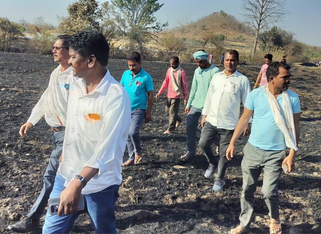 बिजली के तार टूटने से भीषण आग, 30 एकड़ गेहूं की फसल जलकर खाक — विधायक नीलेश उईके ने किया मौके का निरीक्षण, मुआवजे की मांग तेज