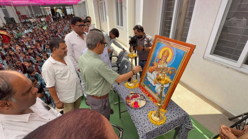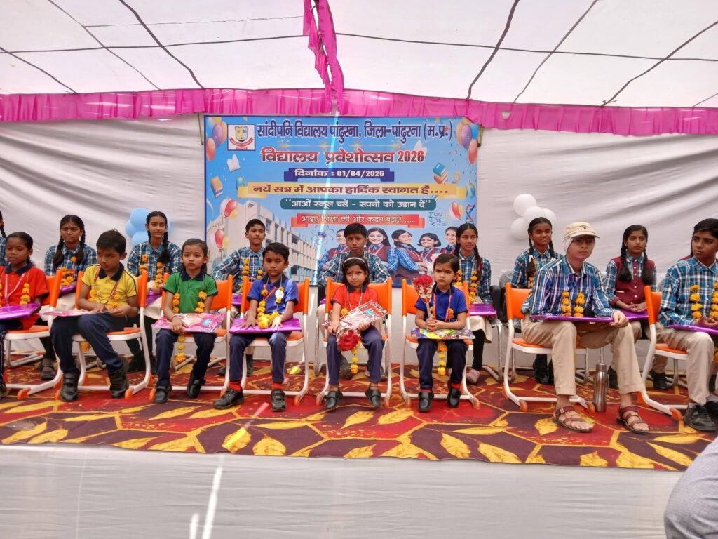 पांढुरना – आज सांदीपनि विद्यालय पांढुर्णा में नवीन शिक्षा सत्र 2026-2027 का शुभारंभ प्रवेशोत्सव के रूप में हर्षोल्लास एवं धूमधाम के साथ किया गया। ‘स्कूल चले हम अभियान’ के अंतर्गत आयोजित इस कार्यक्रम में भोपाल से राज्य स्तरीय कार्यक्रम का सीधा प्रसारण भी किया गया, जिसे उपस्थित विद्यार्थियों, पालकों एवं अतिथियों ने उत्साहपूर्वक देखा।