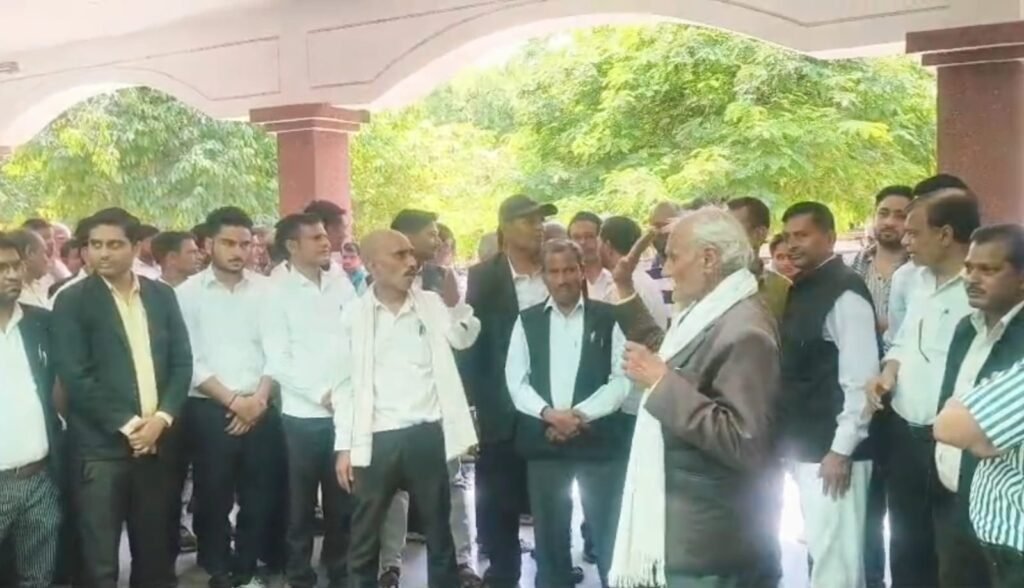 हमीरपुर :ज़ोरदार प्रदर्शन कर उपजिलाधिकारी व पेशकार के स्थानांतरण की मांग पर अड़े अधिवक्तागण