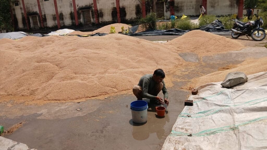हमीरपुर :बेमौसम बारिश से भीगा सैकडों कुंतल गेंहू, किसानों ने की तौल शुरू कराने की मांग